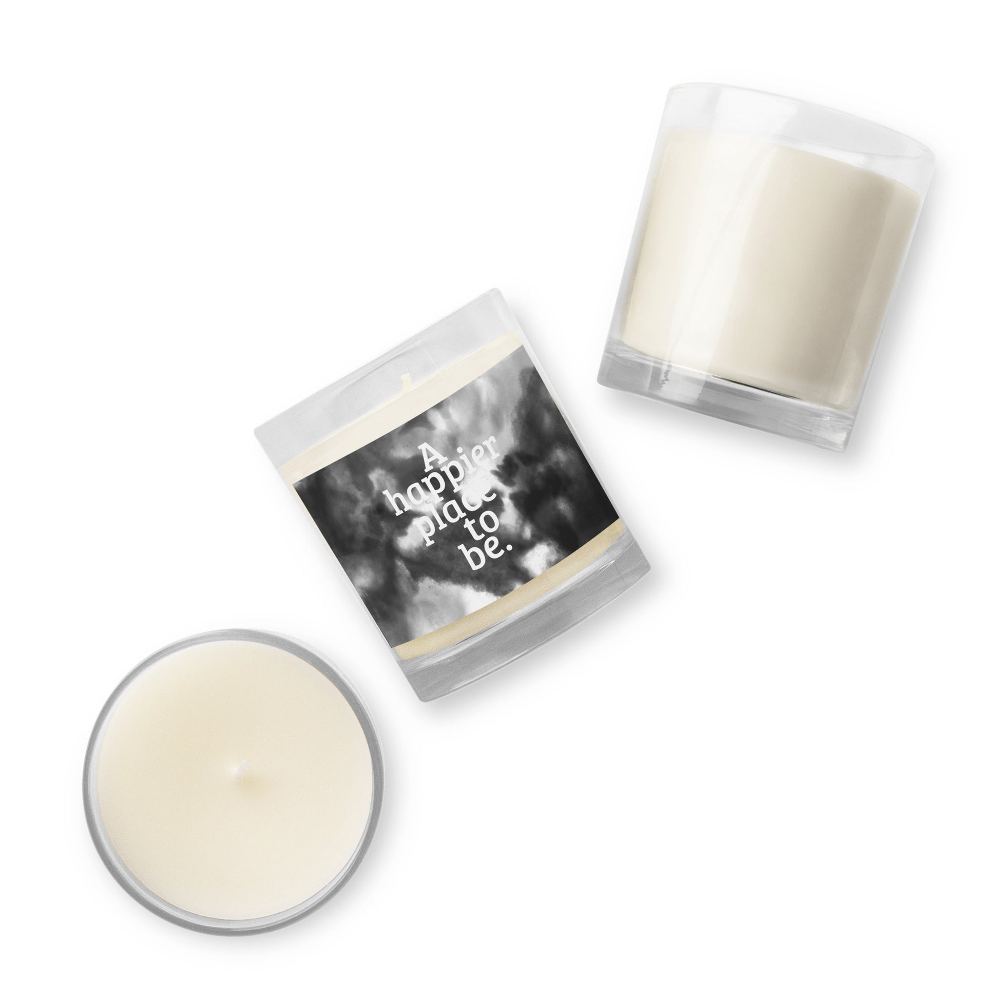 "A happier place to be" Glass Jar Soy Wax Candle - Unscented